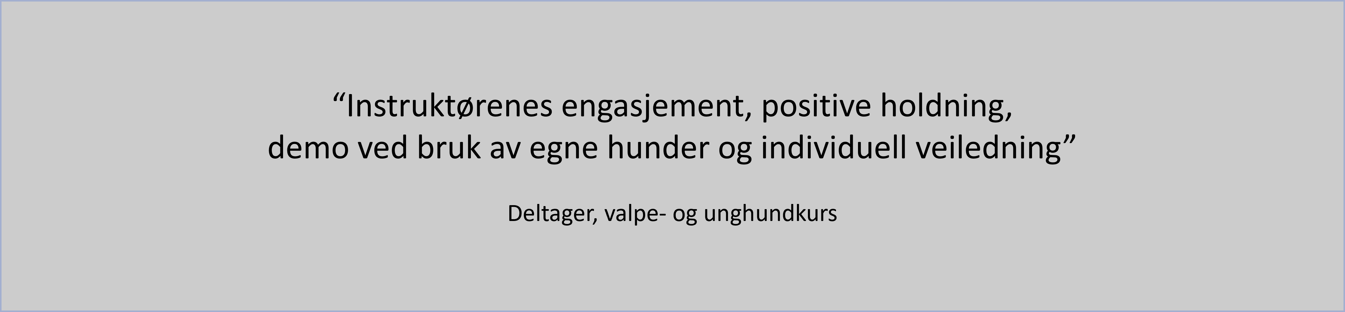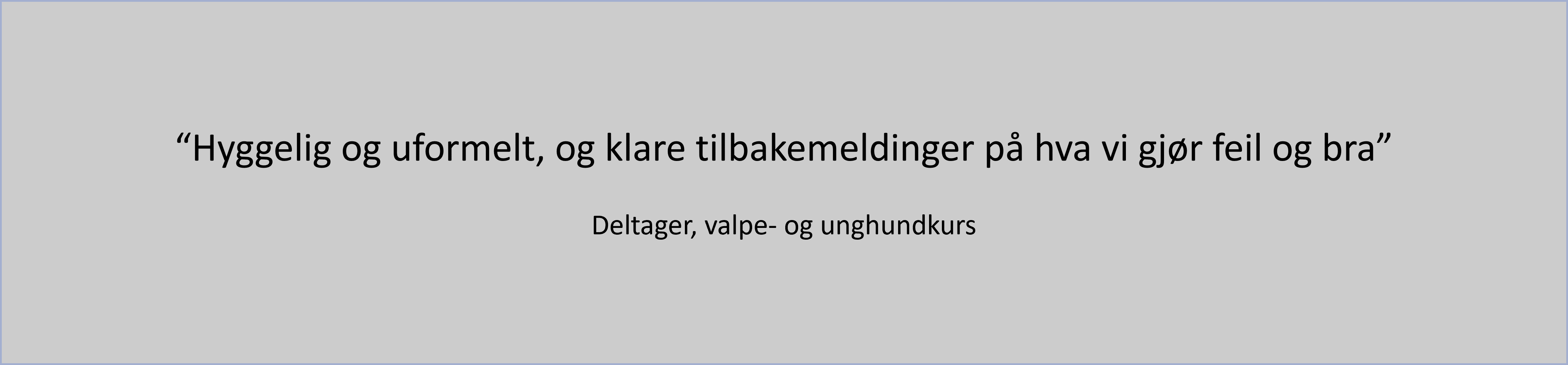 Vi lærer inn øvelsene på en positiv måte med hjelp av godbiter, leker og riktig bruk av stemme og kroppspråk.